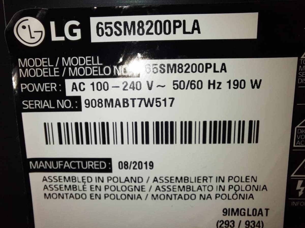TV LG 65SM8200PLA, uhlopříčka 164cm, funkční