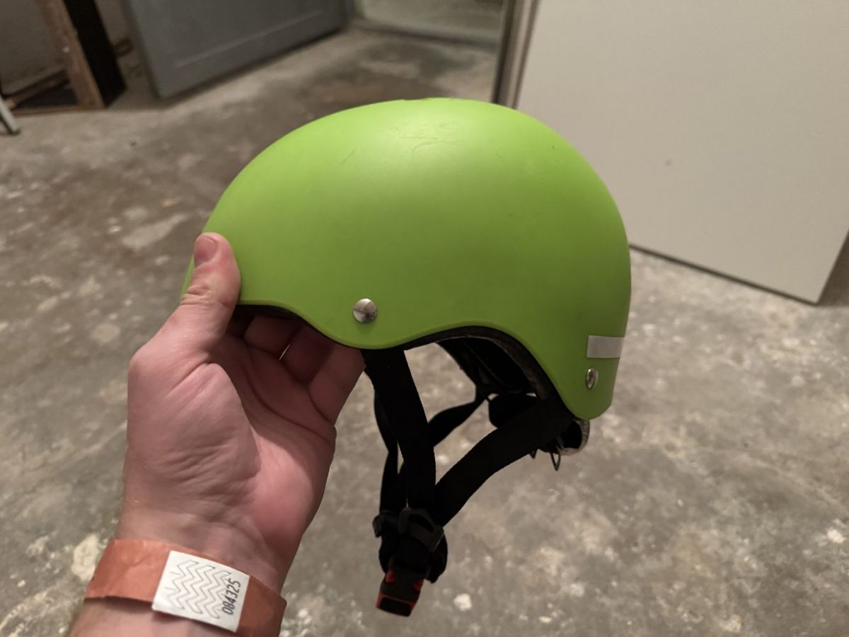 Daruji za odvoz dětskou helmu, nastavitelná velikost. Bez závad, zelná barva.