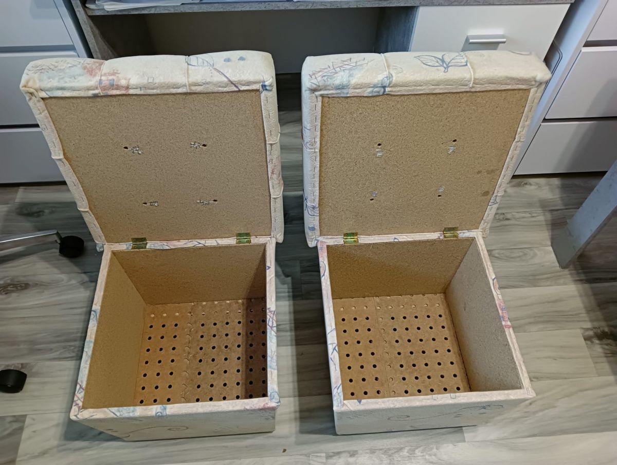 Daruji dva taburety s úložným prostorem, viz fotografie. Pouze osobní odběr!