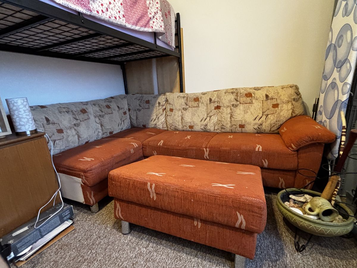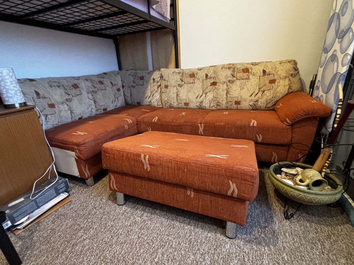 Daruji za odvoz rohovou sedací soupravu s rozkladem na lůžko. Rozměry 235x210 cm hloubka a výška 90 cm . Nepoškozeno.