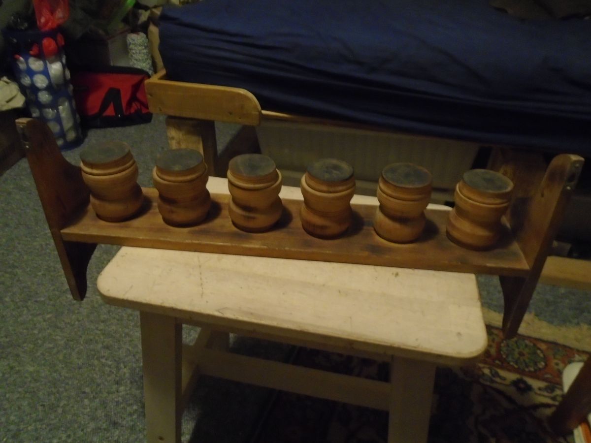 Délka poličky - 62cm, výška kořenky - 10cm, průměr - 6cm.