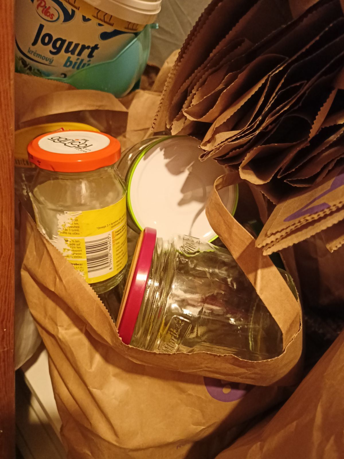Daruji za odvoz jednu plnou tašku vymytých sklenic. K vyzvednutí u metra Hradčanská.