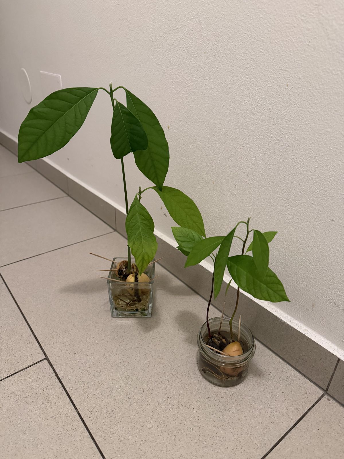 Mnou vypestovane rostlinky Avokada. Vykliceno ze 100% bio pecek avokada primo z Krety -nestrikano!