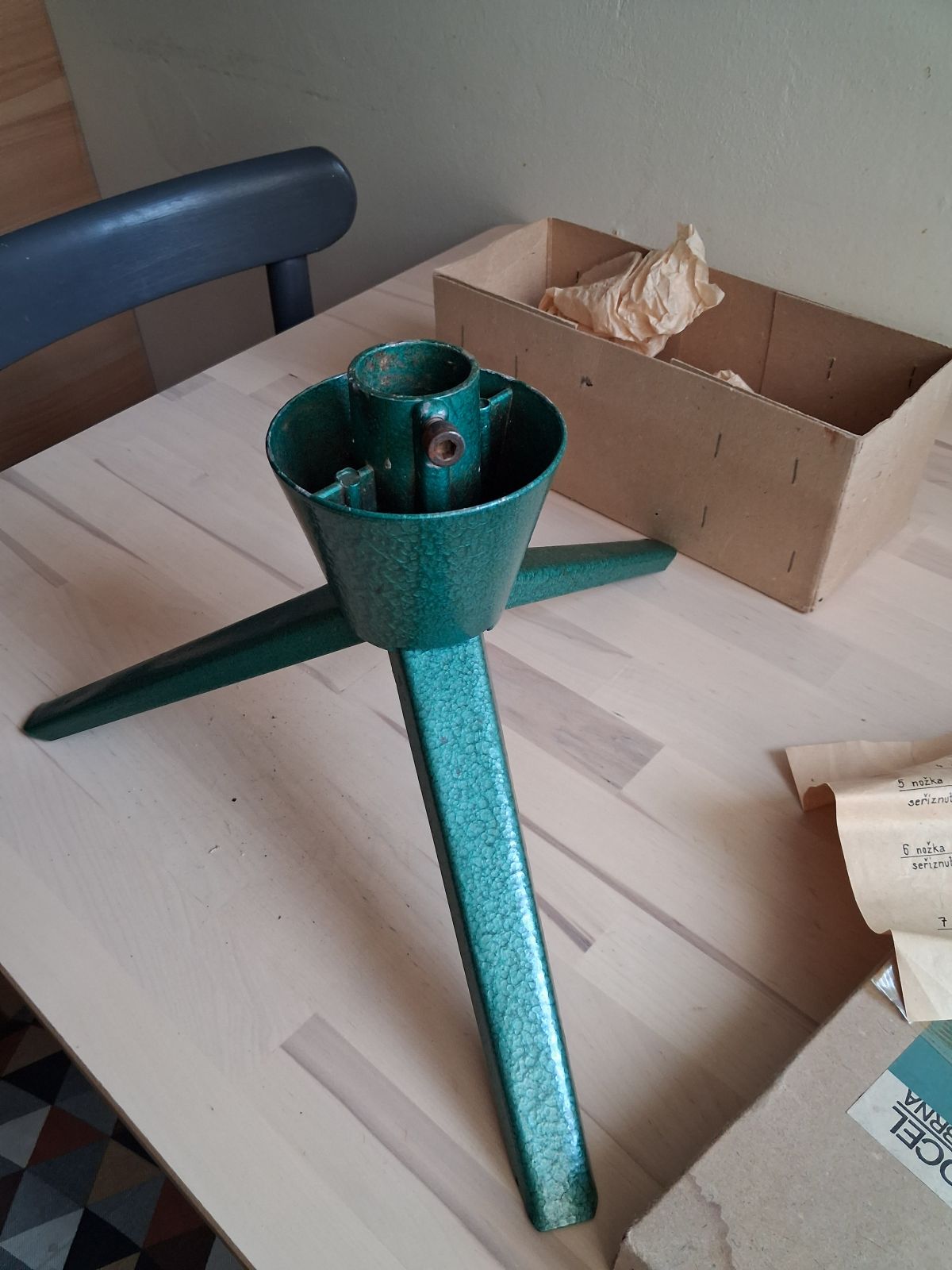 Daruji za odvoz železný stojan na vánoční stromeček.