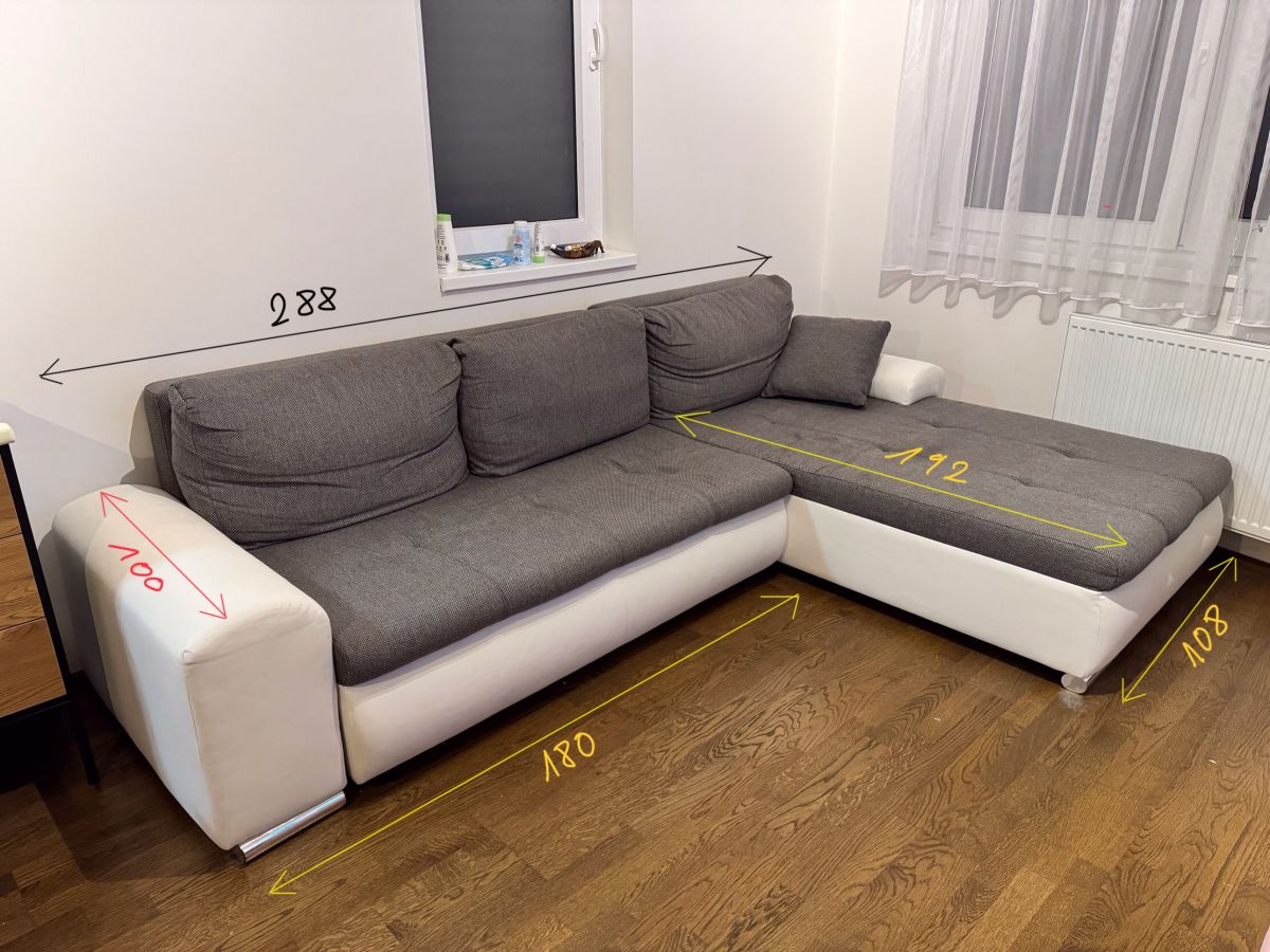 Daruji za odvoz rozkládací sedací soupravu ve tvaru L. (Textil / Koženka)