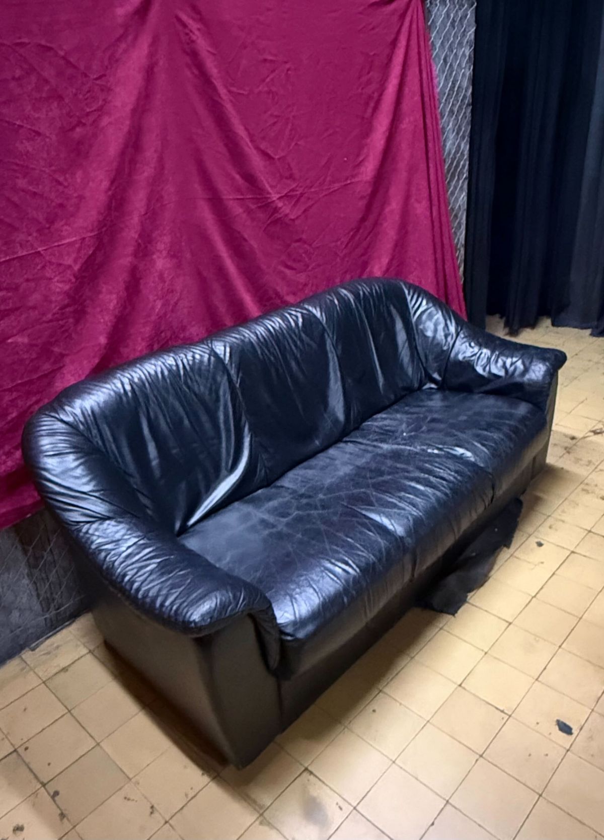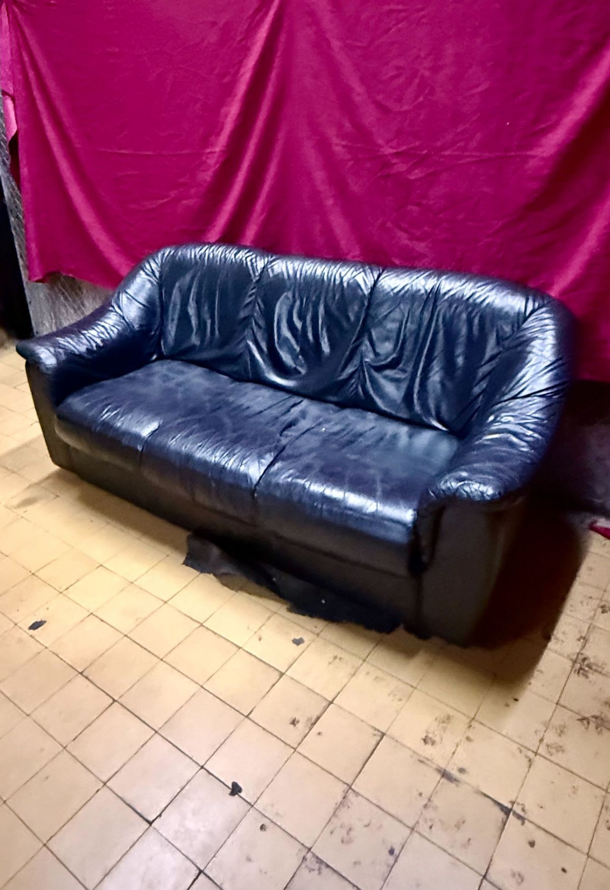 Daruji za odvoz černou trojsedačku. Potah je čistý, nepotrhaný. Vypadá pěkně. Je ale dost používaná a vnitřní kostra je už několikrát opravovaná a vystužovaná. Sedí se na ní dobře a laik to snad ani nepozná.