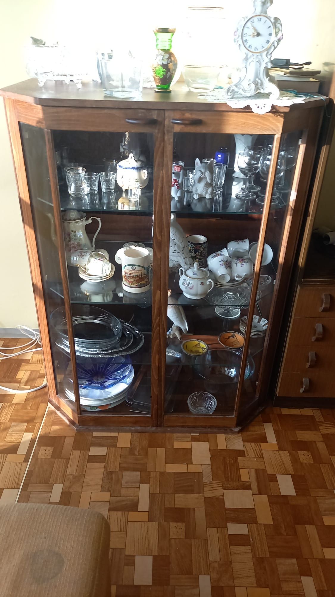 Daruji za odvoz stěnu, včetně stolu a vitríny. Ta se dá zapojit do elektriky a je podsvícená. Odnos z paneláku - 4.patro bez výtahu.