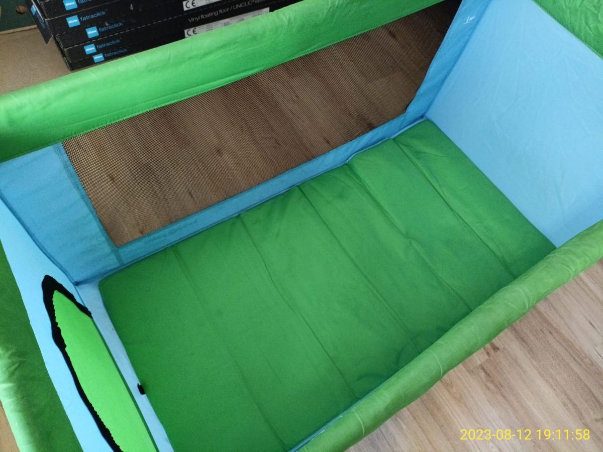 Daruji za odvoz dětskou cestovní postýlku včetně matrace a látkového obalu s uchy, ve kterém je možné postýlku přenášet. Dno postýlky se skládá cca z 5 lamel, z nichž 1 je propadlá. Postýlku jsme dostali zdarma k nákupu bazarové klasické postele a využili pouze 1x. Matrace už má to nejlepší za sebou; používali jsme v kombinaci s nepromokavým prostěradlem. Osobní předání v Říčanech.