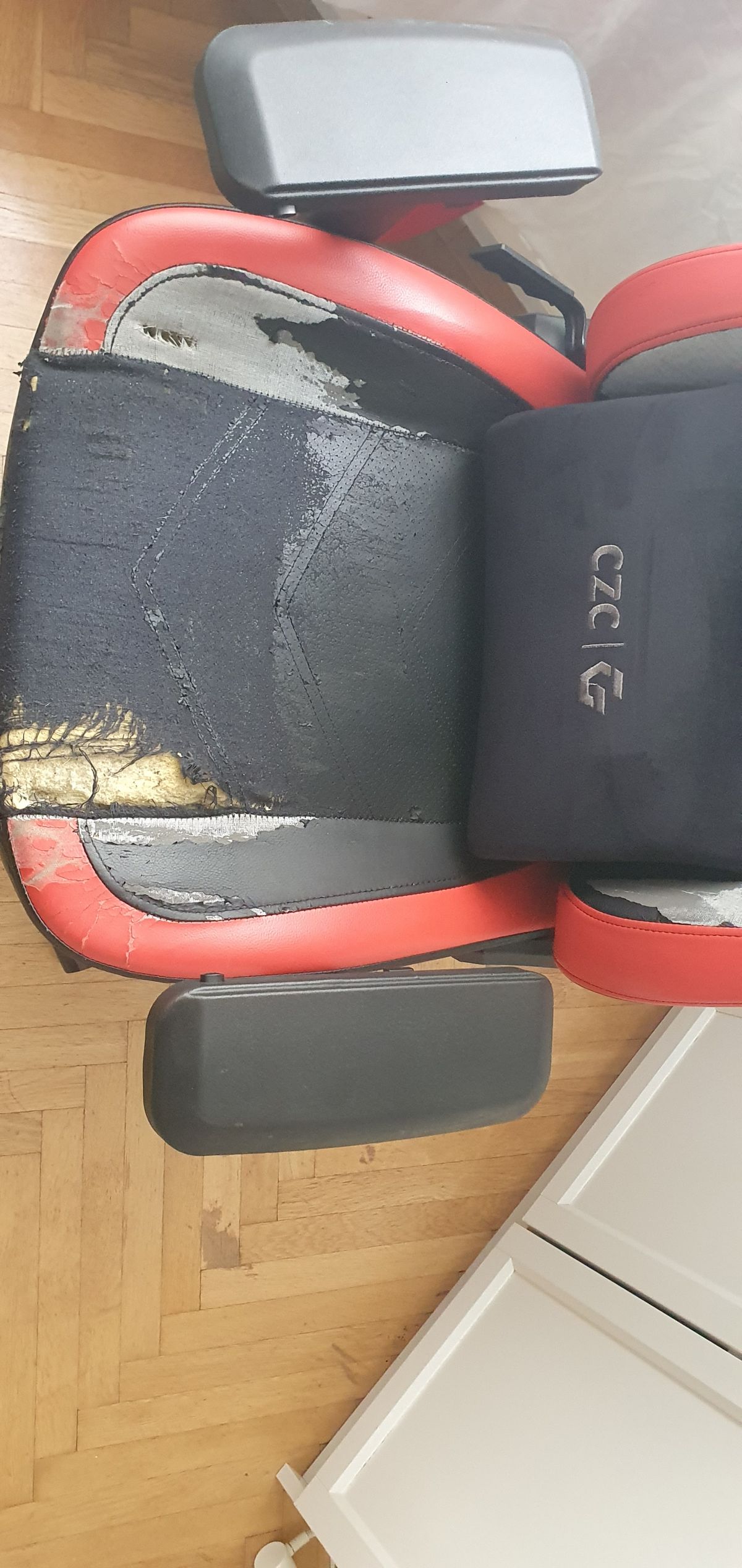 Daruji za odvoz - herní židle, koženka se loupe a sedák je mírně poškozený, ale jinak je funkční.