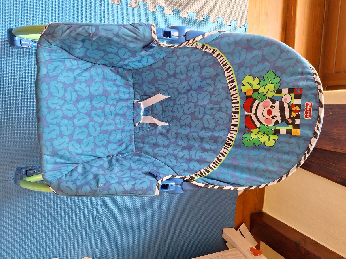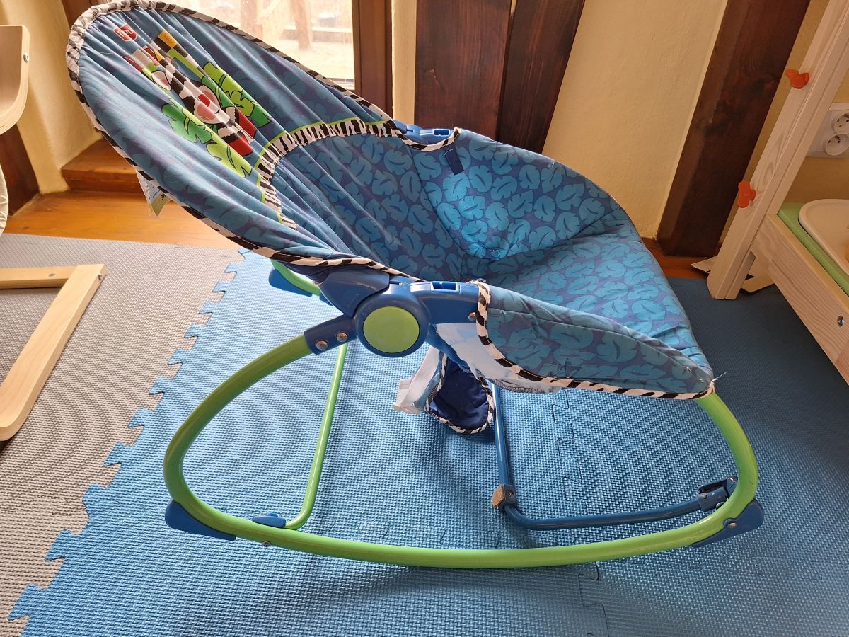 Hrazdička na zavěšení hraček není na fotce ale přidám ji ke křesílku. Pásy na zajištění miminka jsou součástí. Na fotce jsou prostrčeny pod křeslo.