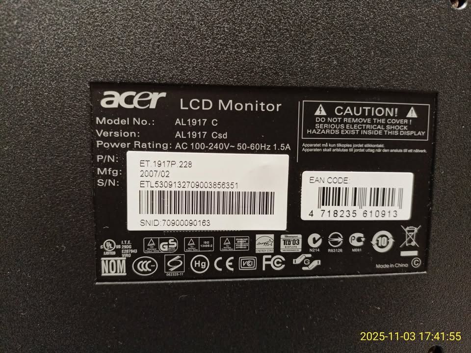 LCD monitor Acer AL1917 – 17", DVI + VGA