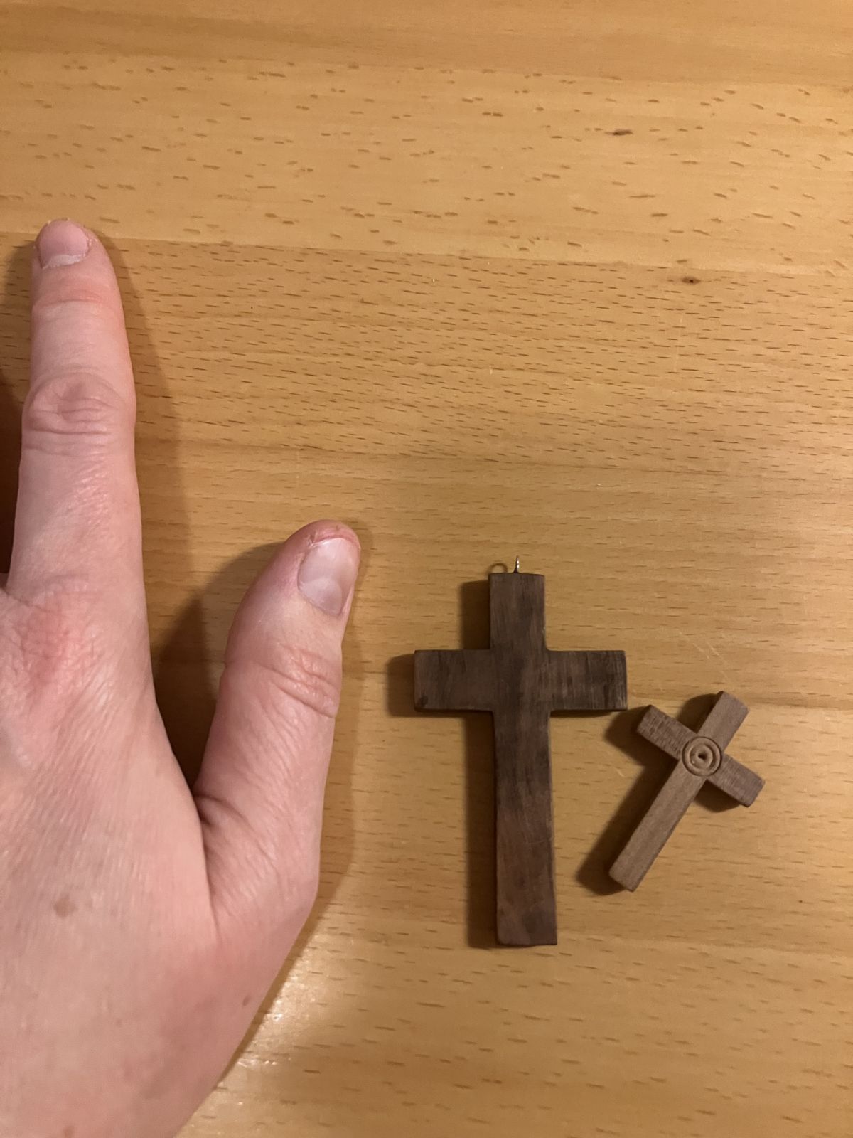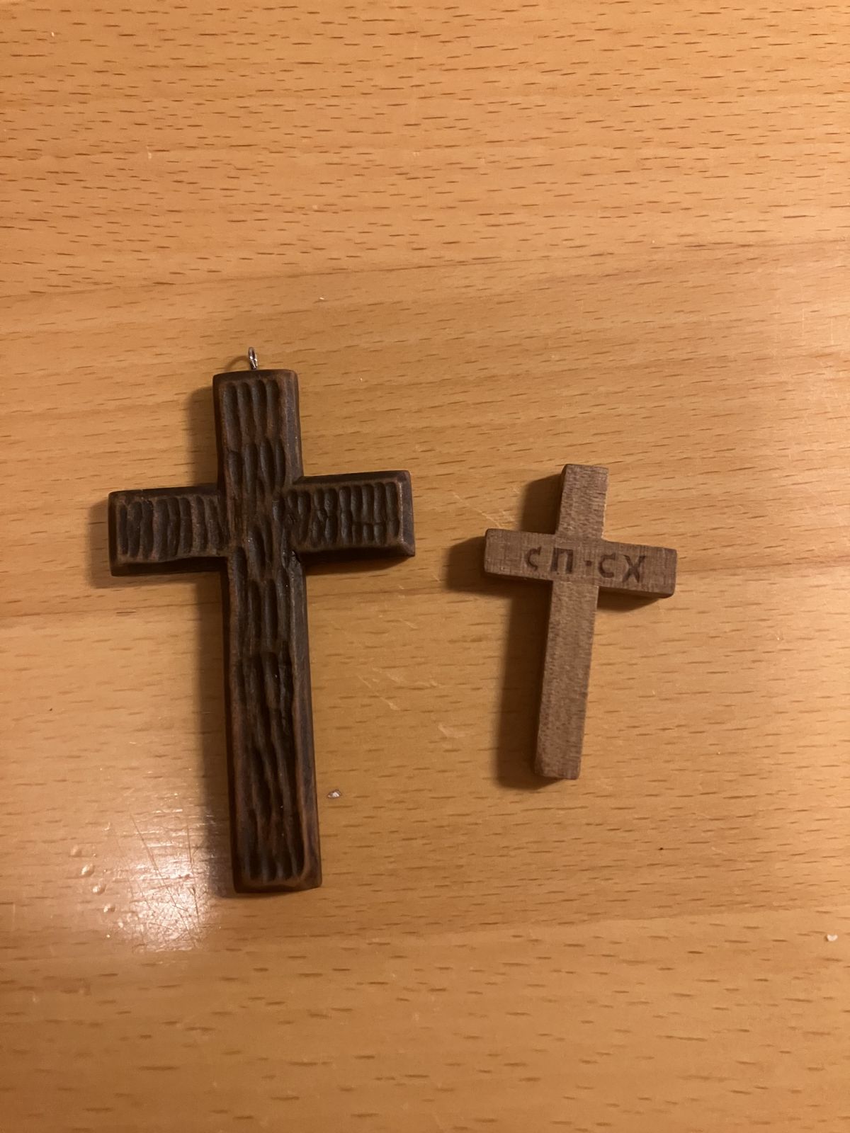 Daruji za odvoz dva drevene krizky jako privesek na krk.