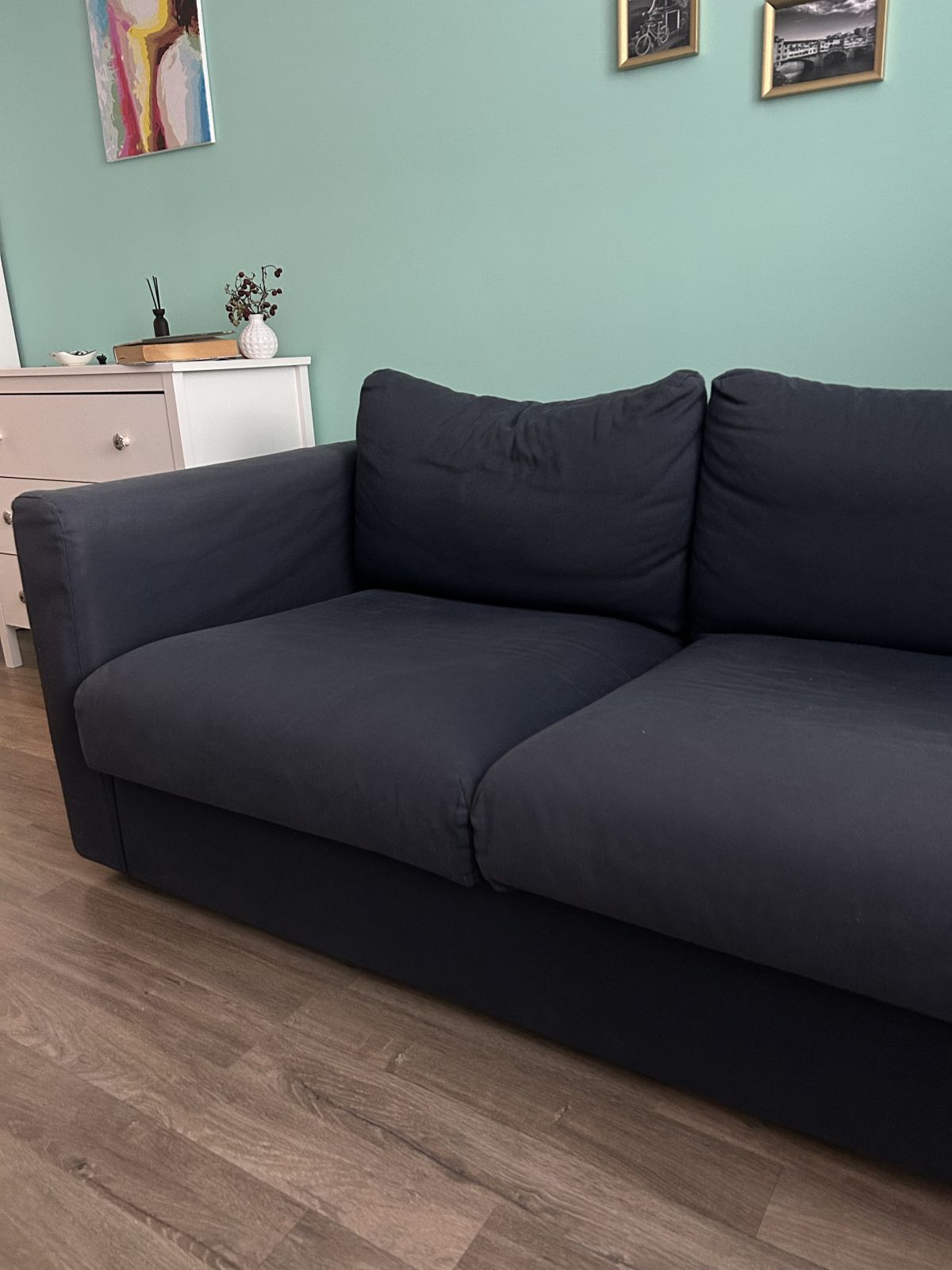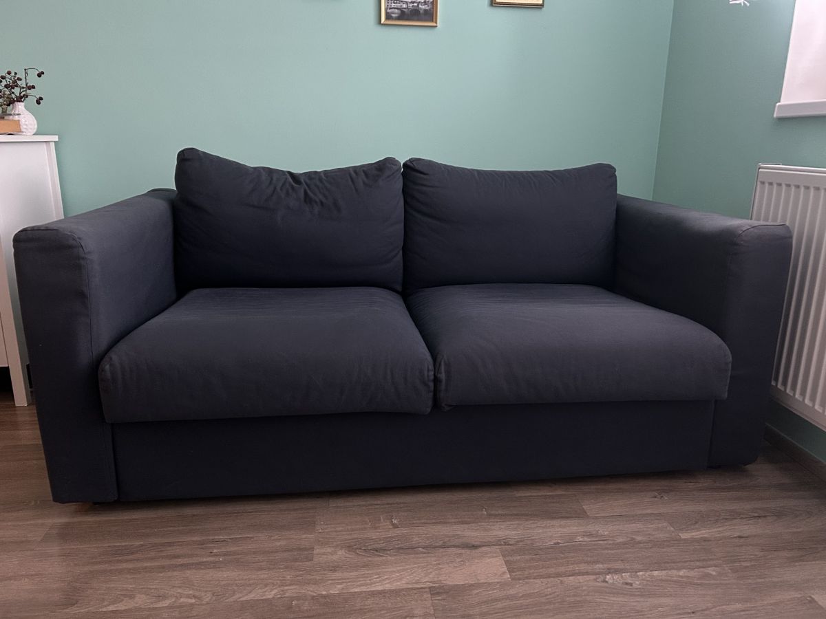 Daruji za odvoz dvoumístnou pohovku v dobrém stavbu, neni rozkládací. Pohovka je tmavě modrá, zachovalá, pouze na některých místech již poněkud vybledlá (viz foto). Rozměry delka 168 cm, hloubka 92 cm, výška 64 cm.