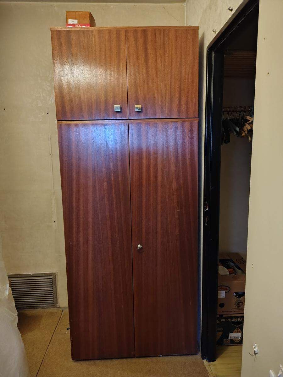Pevná skříň s nástavcem. Rozměry 86x61, výška 160+52. Pomůžu naložit rudlem.