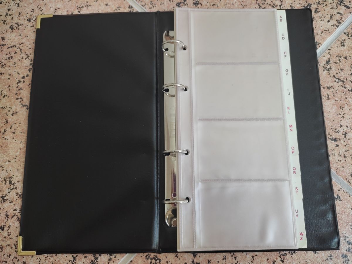 Čtyřkroužková mechanika. Možnost doplňování jednotlivých listů. Velikost cca: 14 x 25 cm.