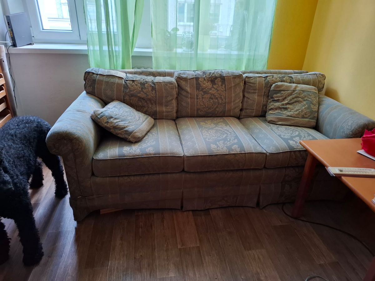 Daruji za odvoz pohovku made in USA, ktera kdysi byla soucasti vybaveni americke ambasady. V 80 cm, D 200 cm, H 95 cm. Vyska sedu od podlahy 46 cm, hloubka sedu 57 cm. Vsechny sedaci a opiraci polstare lze sundat a vyprat. Vlastni odnos a odvoz. 1.patro bez vytahu.