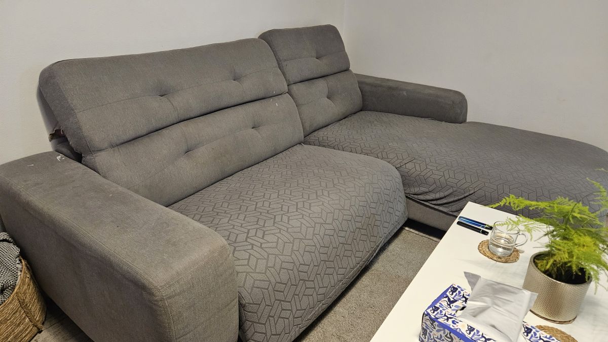Daruji za odvoz rohovou sedačku šedé barvy.