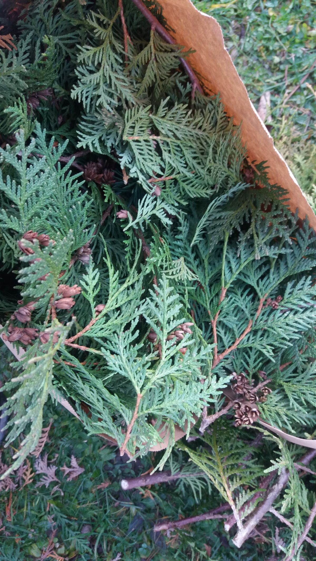 Drobné větvičky thuje a tisu na adventní věnec pro p Ondřeje