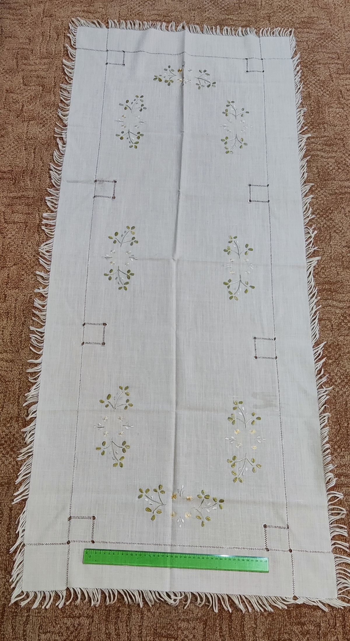 Daruji za odvoz vyšívaný velký ubrus. Rozměry jsou cca 75 x 172 cm. Barva je více do žluta. Fotka zkresluje. Podívejte se na moje starší nabídky.