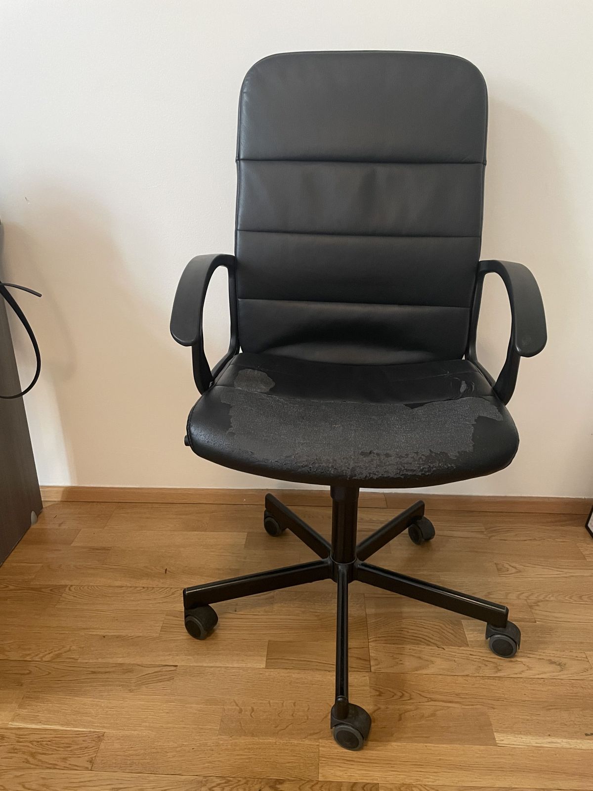 Kancelářská židle, která má svůj věk, ale je stále skvěle pohodlná.