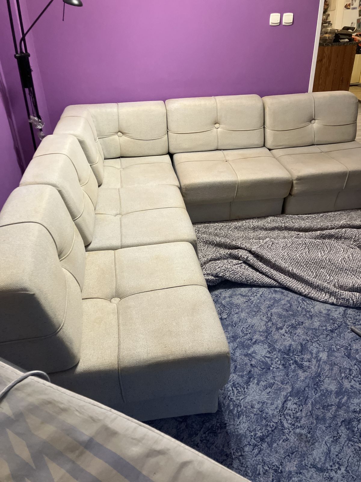 Daruji za odvoz : sedací souprava bez úložného prostoru, složena z jednotlivých křesel. Čtyři křesla plus jedno rohové tvoří profil L, . Levý nebo pravý, dle potřeby. Každá ze stran má 220cm. Velice zachovalá.