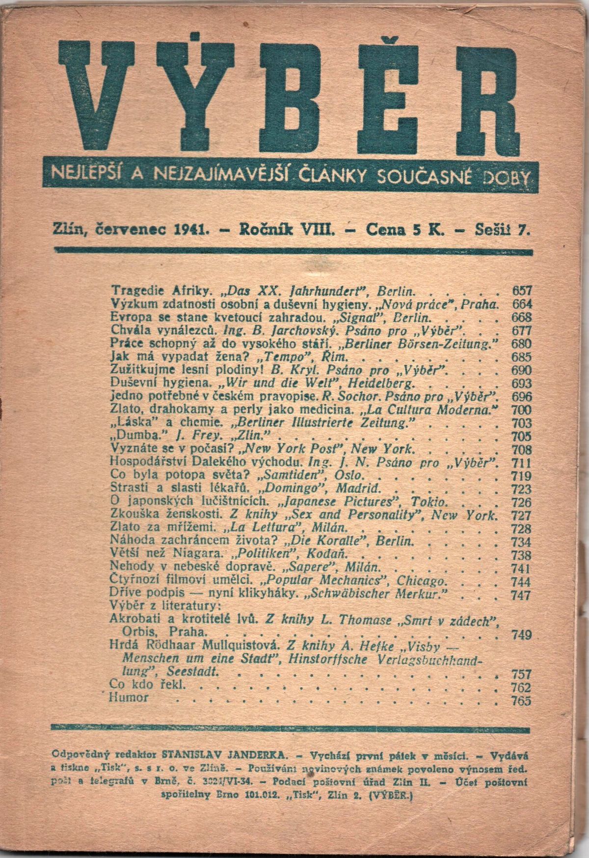 VIII. ročník 1941 jen jedno číslo (7) v pořádku