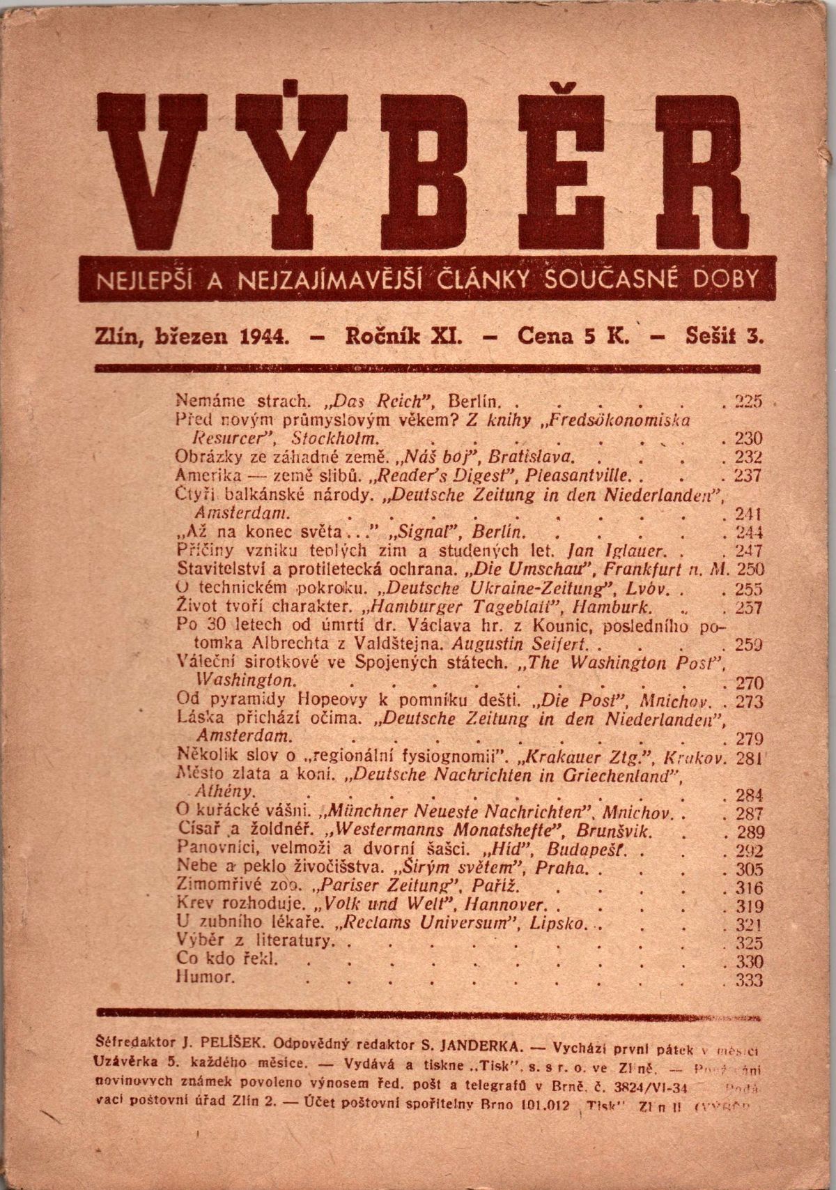 XI. ročník 1944 jen čtyři čísla (2, 3, 4, 5) téměř v pořádku, čísla 3 a 4 dvakrát