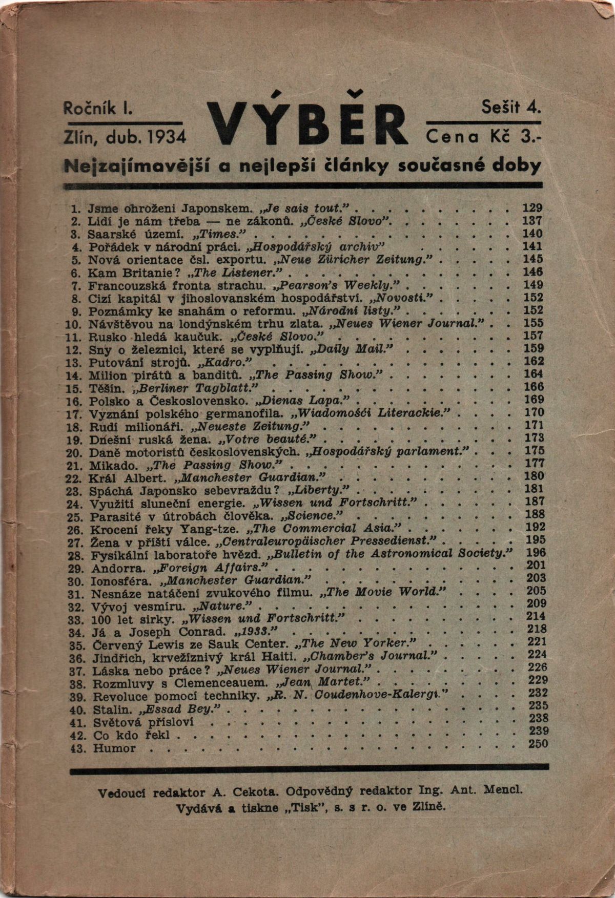 I. ročník 1934 jen jedno číslo (4) téměř v pořádku
