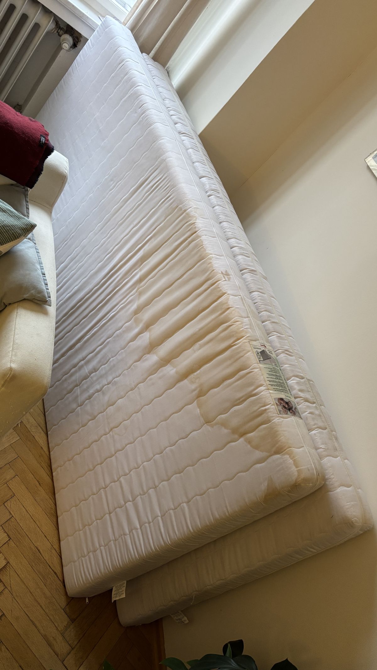 Daruji za odvoz 2x matrac jednoluzko, skvrna na matracu je od vody bohuzial sa to takto zabarvilo z vnutornej peny. Vyzdvyhnutie na namesti jiriho z podebrad, cez vikend kedykolvek, v tyzdni po 17:30