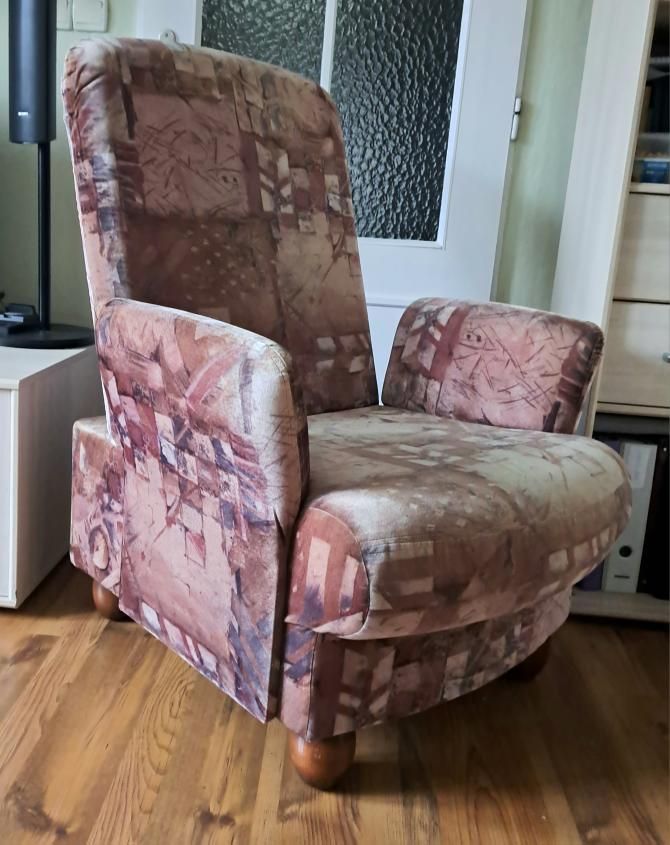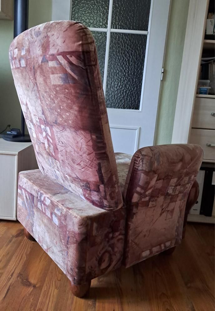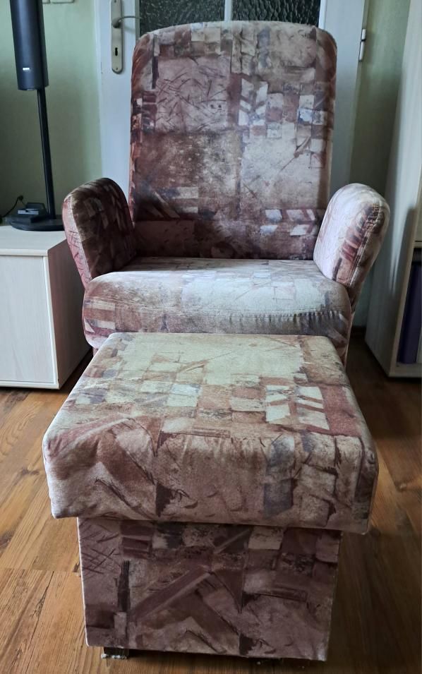 Pohodlné kreslo na dřevěných kulatých nohach s taburetem, příjemné se v něm sedí. Potah mikroplyš. U nás není využíváno. Rozměry taburetu:vrchní část 41x41 cm, Dolní část 36x36 cm, výška 41 cm. Kreslo: výška 100 cm, výška sedu 44 cm, výška područek 62 cm, šířka 78 cm, hloubka 74 cm. Osobní odběr, vlastní odvoz kupujícím. ZDARMA vlastní odvoz.