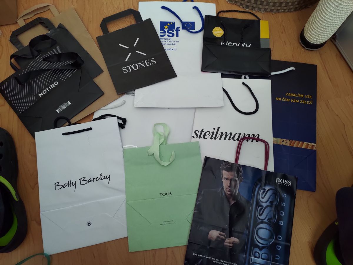 Daruji za odvoz cca 12 papírových tašek, různé potisky.
