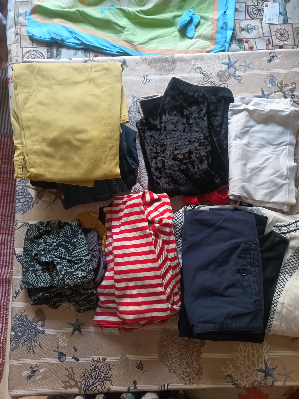 Daruji za odvoz tašku dámského oblečení. Několik úzkých kalhot velikost S a trička velikosti M