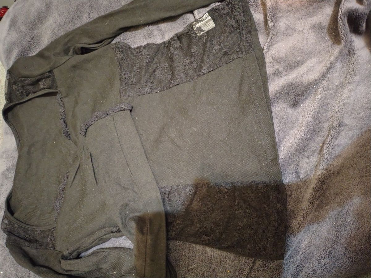 Cerne damske tricko s krajkou, velikost M. V krajce je ve svu mala dirka, jinak je nove. Predani pres den Vaclavske namesti, vecer Svandovo divadlo.