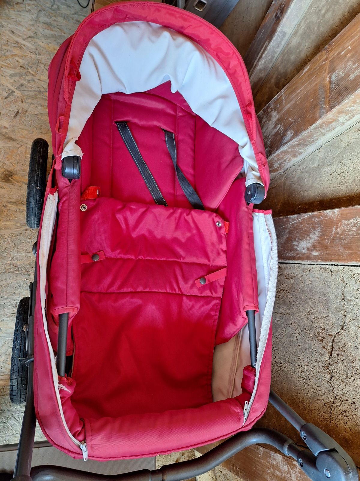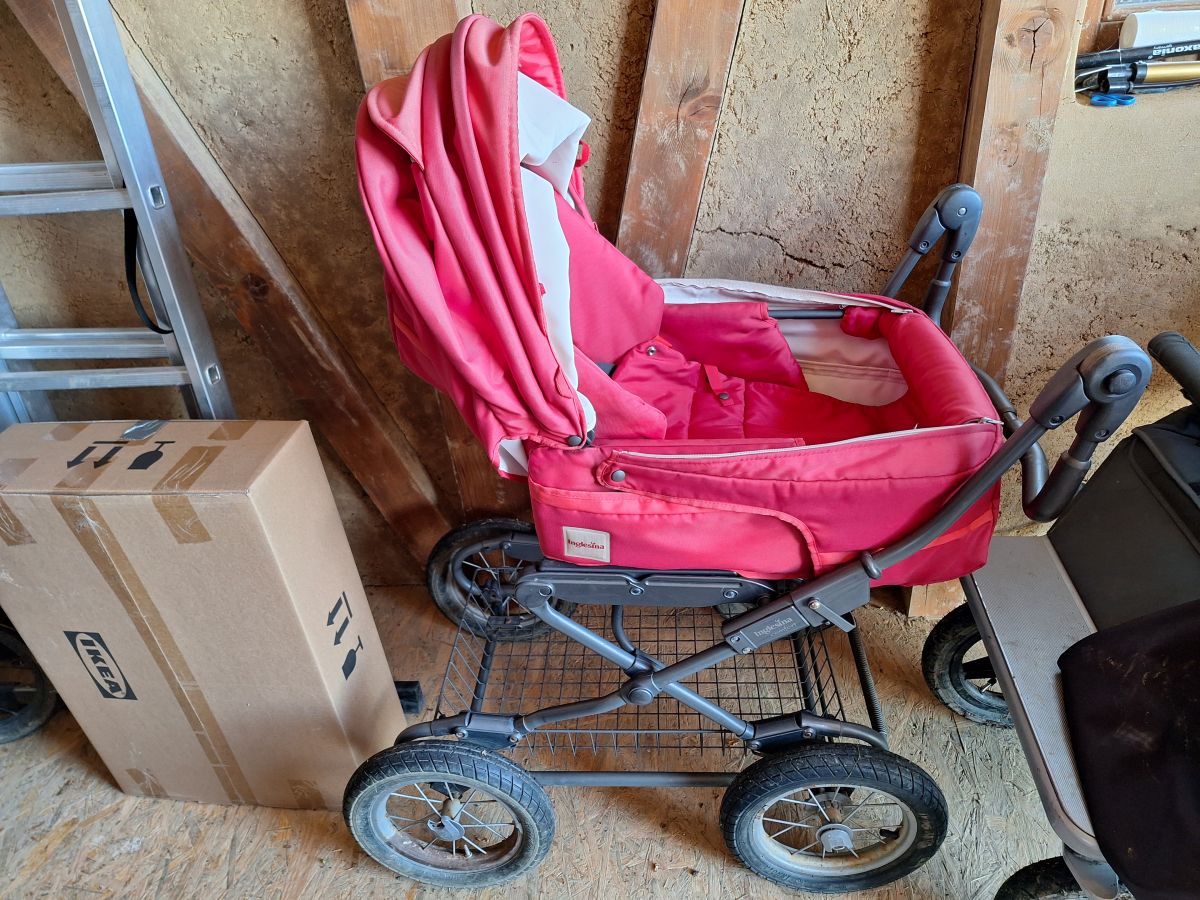 Kočárek s polohovatelnou korbičkou. Lze používat jako hluboký kočárek nebo již pro sedící dítě (v této poloze je vratší). Pasuje na něj autosedačka vajíčko z mých inzerátů.