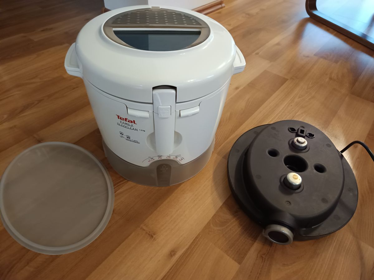 Daruji za odvoz. Po vychladnutí oleje, lze olej přefiltrovat do nádoby, ten pak znovu použít bez zbytků, např. strouhanky z předchozího fritování.