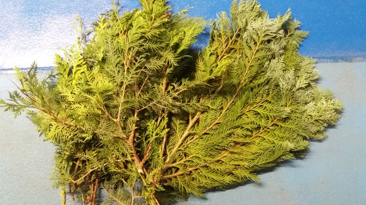 Větvičky z klasické a modré thuje pro paní Sonea