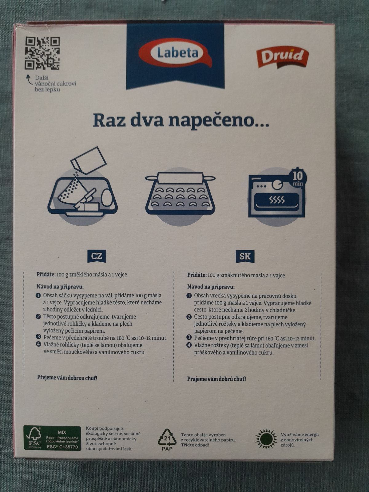 Bezlepková směs na pečení vanilinových rohlíčků. Minimální trvanlivost do 1. 2. 2026. Nenačnuté. My doma nevyužijeme a budeme rádi, když někde najde uplatnění. Možno předat v dopoledních hodinách na Hradčanské, odpoledne poblíž Andělu.