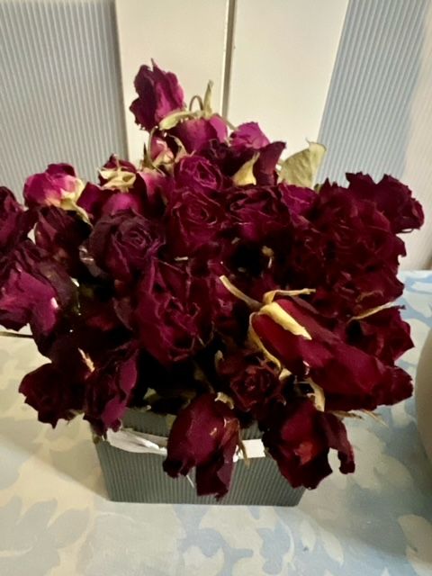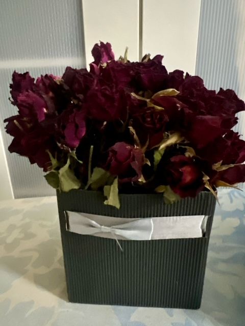 Daruji za odvoz dekorace, usušené růže v boxu. Odvoz Praha 5 Košíře, Vrchlického 678/80 (tram zastávka Klamovka - tram č. 9, 10, 16, 15 aj.)