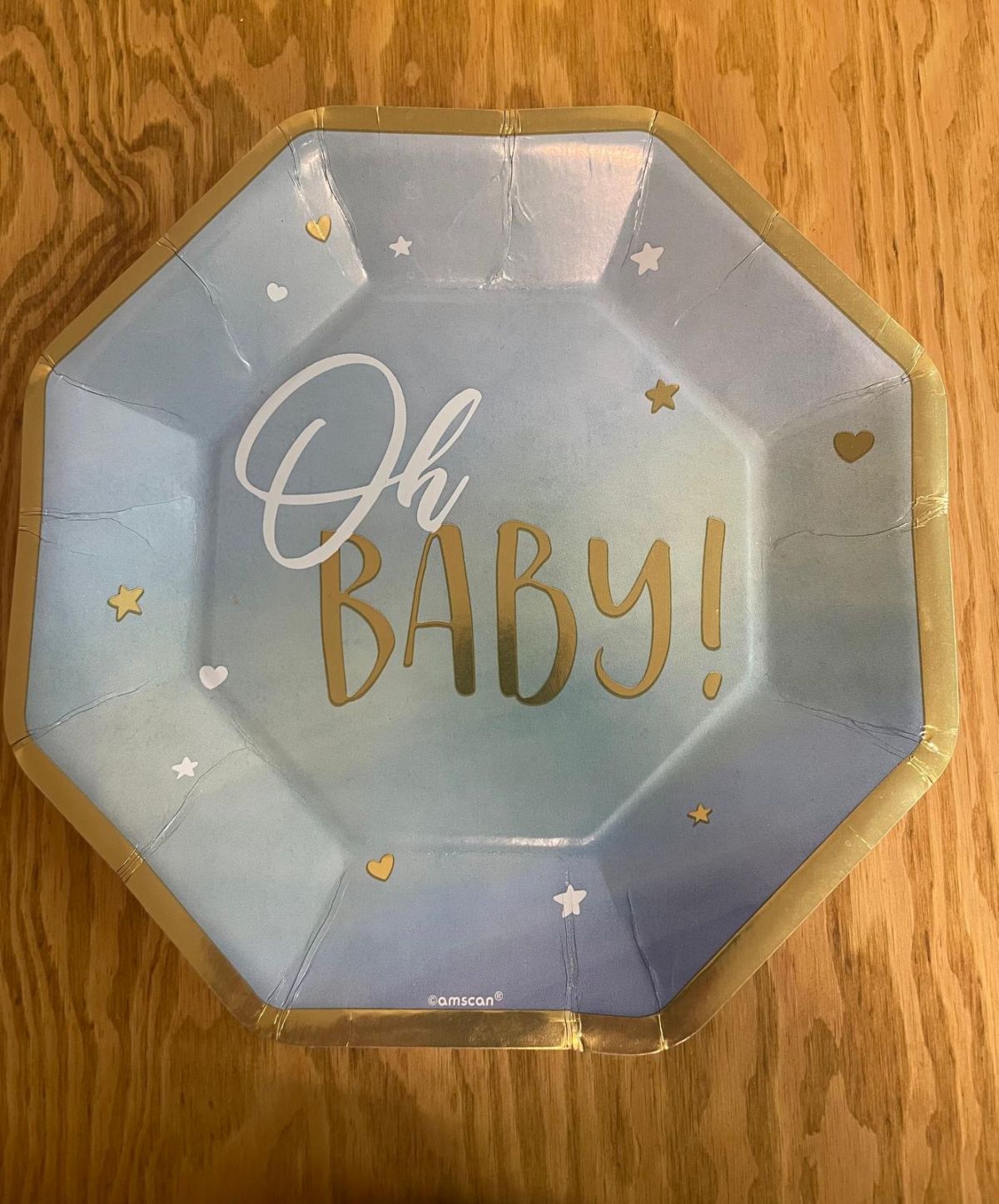 Daruji za odvoz doplňky na baby shower party: Papírové talíře – 12x, nepoužité