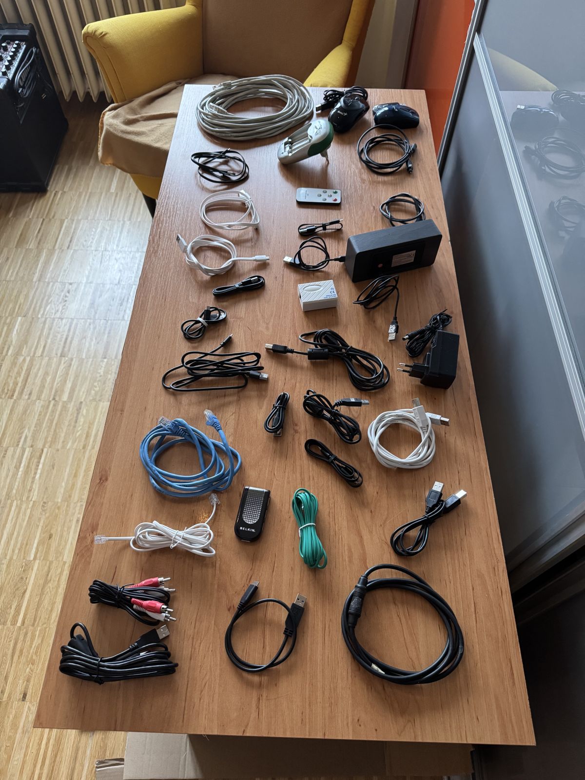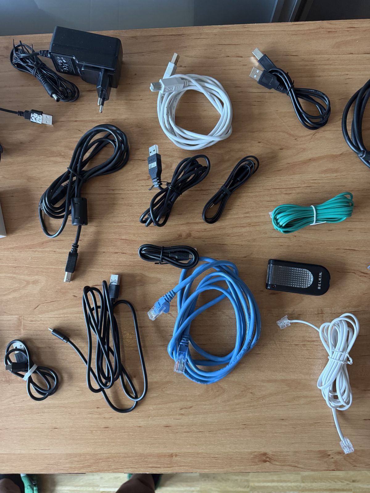 Vyklízím skříň a daruji přebytečné kabely a dalších pár věcí. Jsou tam: