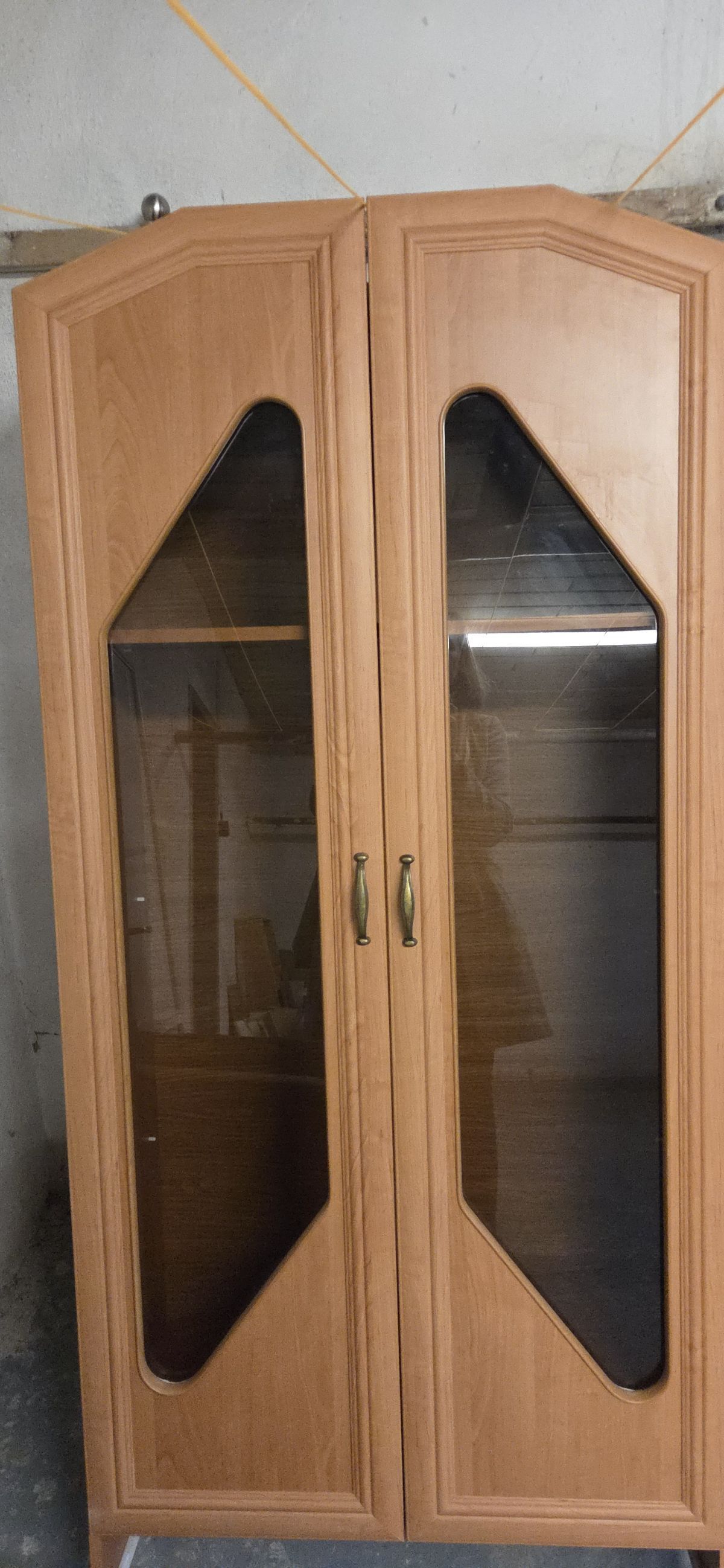 Prosklená skříň s policemi a šuplíkem