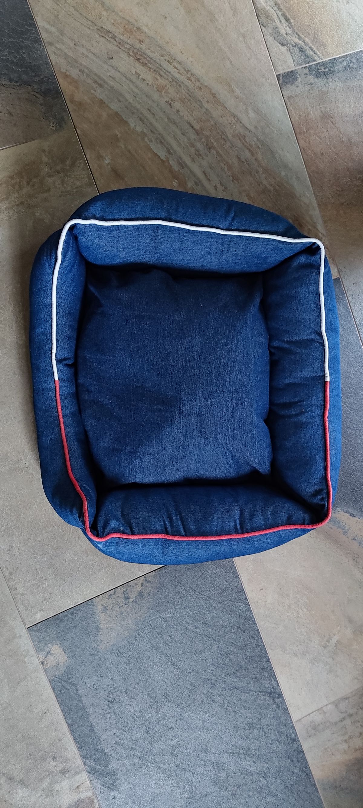 Textilní, měkký pelíšek, používaný cca 2-3 měsíce. Rozměry viz fota. Dobře pratelný, prali jsme v netoxických eko prostředcích. Obal vnitřního polštáře na boku trochu roztržený, lze snadno spravit. Darujeme, štěně pelíšku odrostlo.