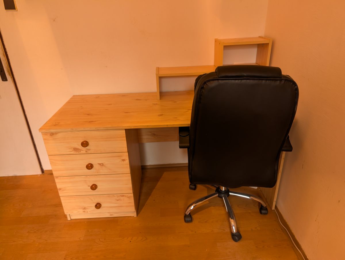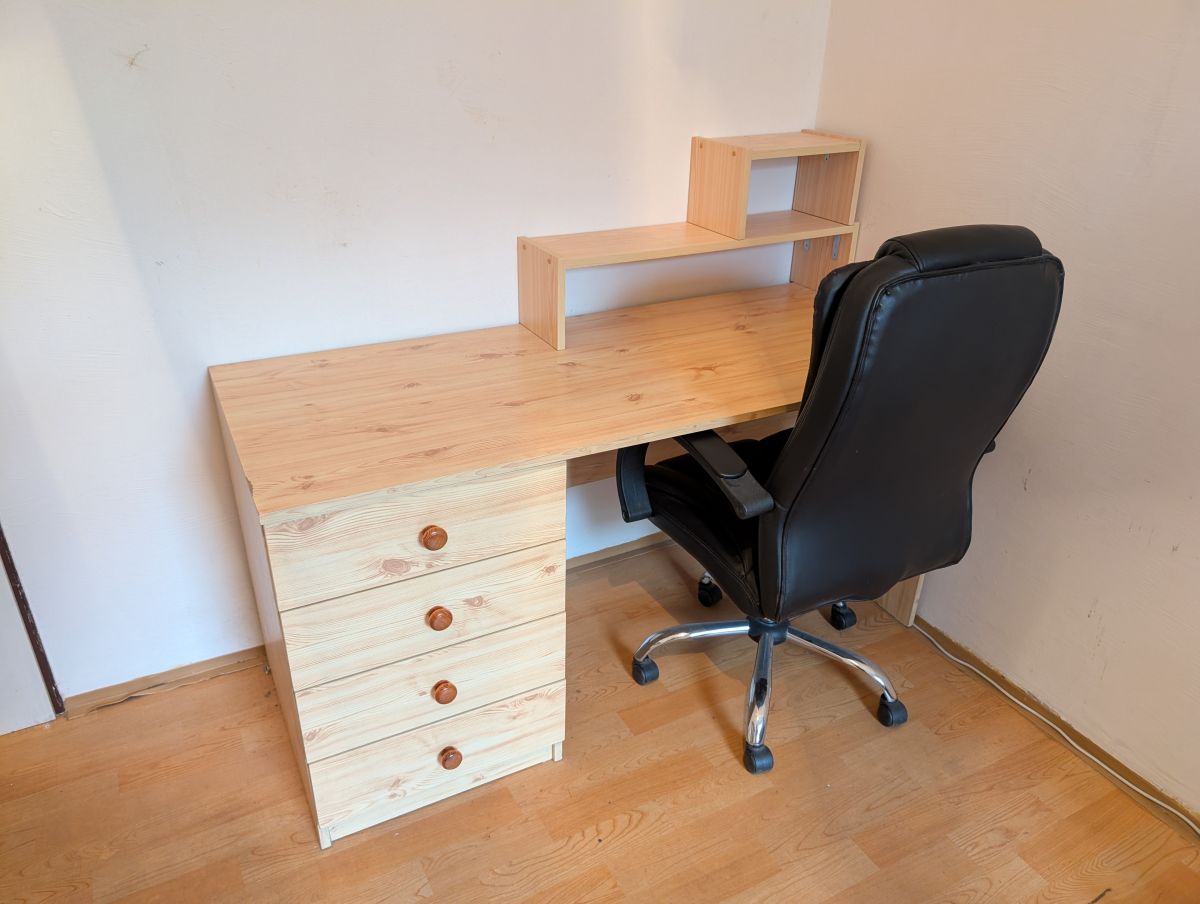 Daruji za odvoz dřevěný pracovní stůl (židle na fotce není součástí, už je pryč)