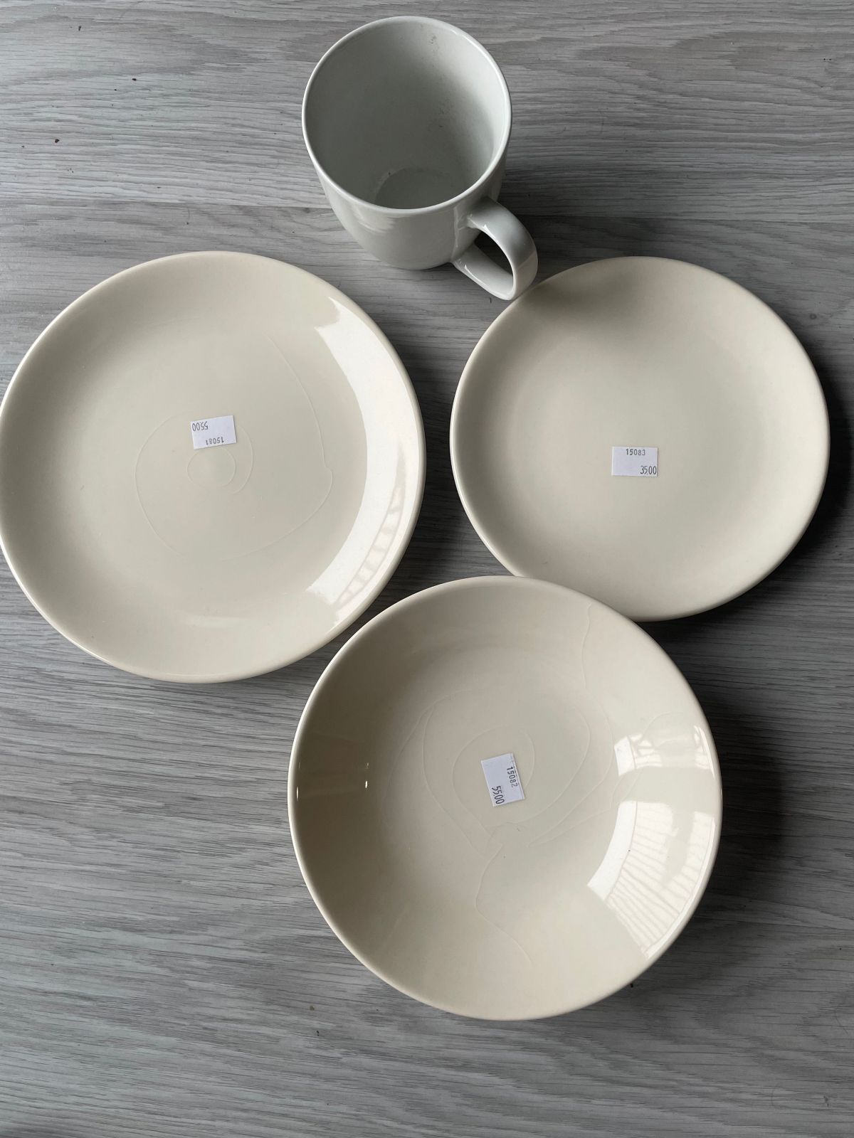 Daruji za odvoz nikdy nevyužité talíře a hrnky. Vše v balení vždy po třech kusech. Velikosti jsou hrnek 10 cm, talíře 20, 21 a 24 cm.