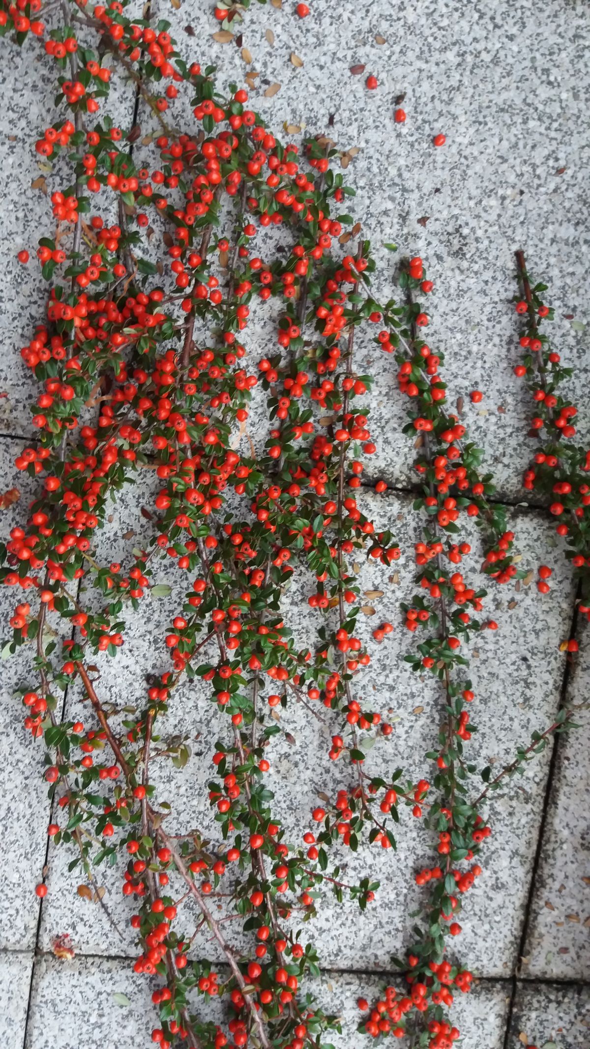 Větvičky skalníku s červenýma bobulema k dekoracím