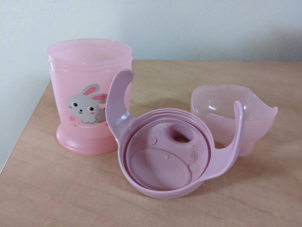 Daruji za odvoz nevylévací hrníček Canpol babies. Šroubovací tvrdé pítko se silikonem zabraňuje vylévání. Držátka jsou pevně spojena s pítkem. Je určen dětem od 9-ti měsíců, objem 200 ml.