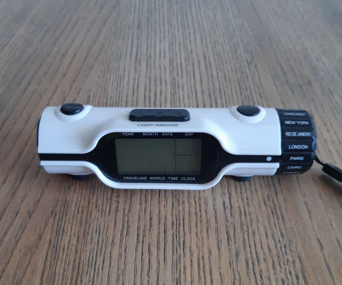 Cestovní budík / hodiny / baterka v jednom. Nepoužívané, nové.