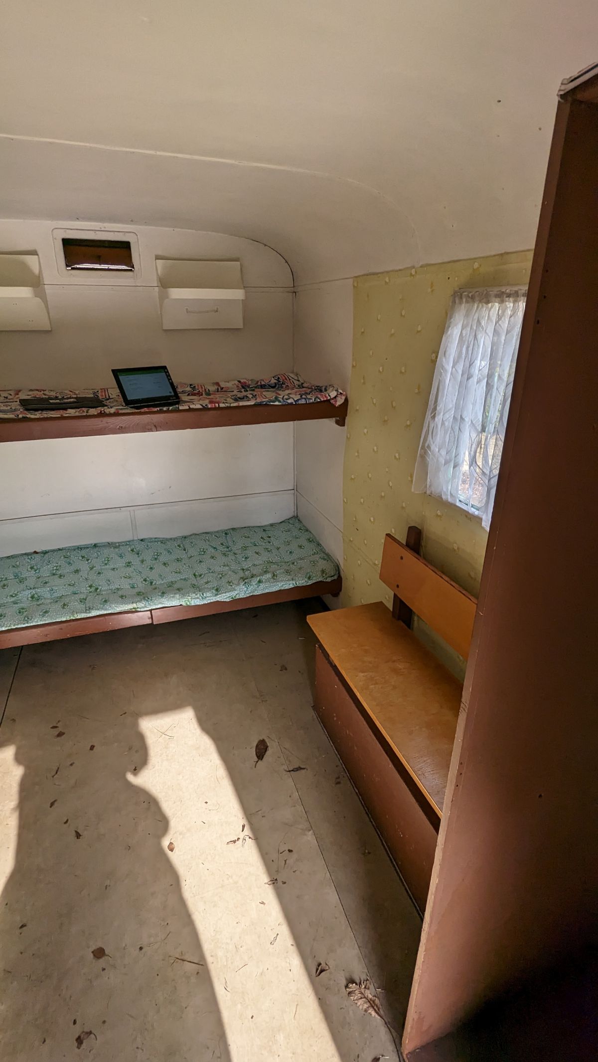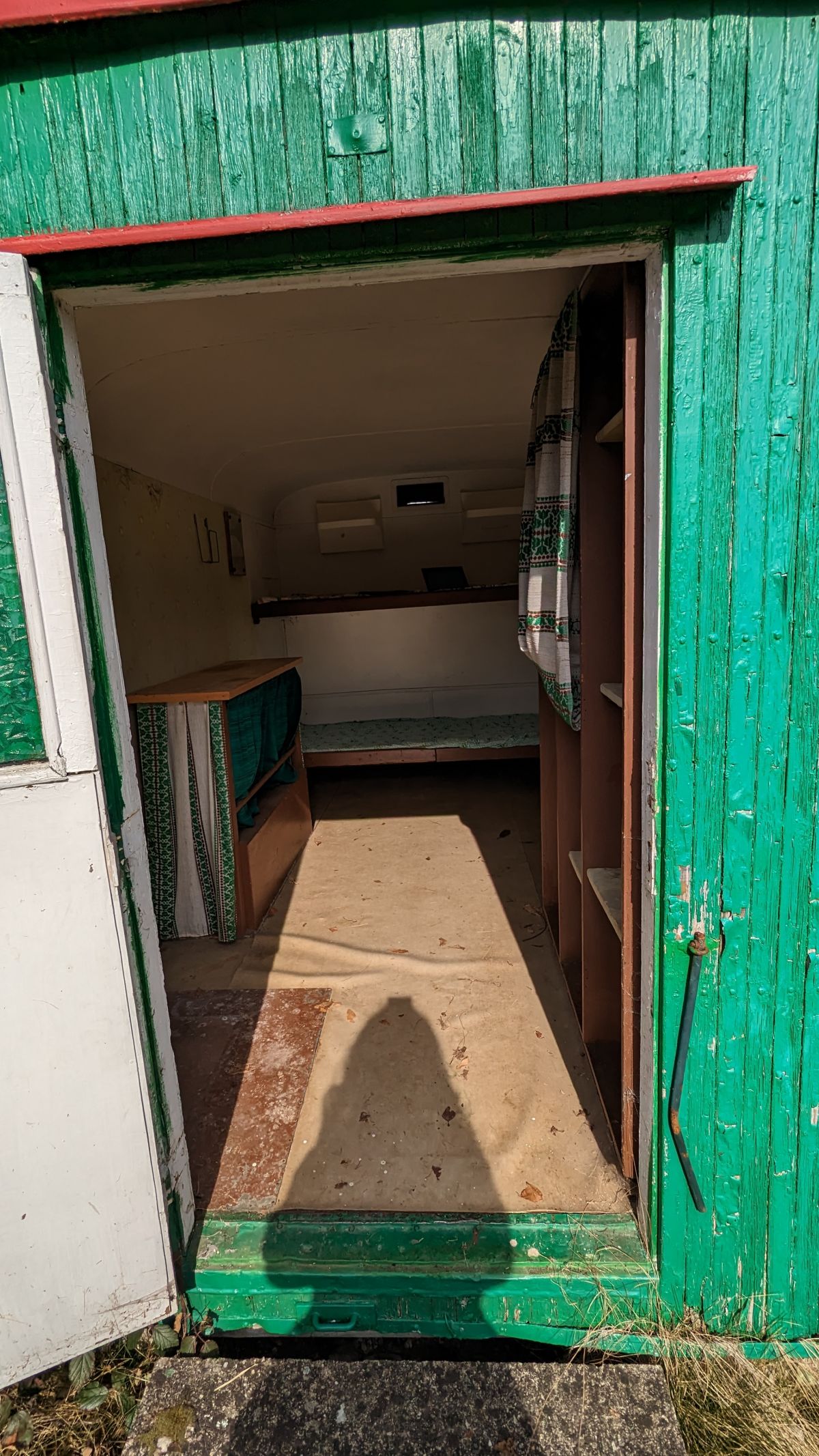 Nabízím starou maringotku za odvoz. Lze ji použít jako zahradní kůlnu, případně na nouzové přespání (není zaizolováno). Maringotka je uvnitř suchá, vybavená lavicí, palandou a policemi, nezatéká do ní, má jedno prosklené okno a malé větrací okénko. Dá se zamknout. Cca 2x3 metry. Bez kol. Termín odvozu dle domluvy - prosím, napište mi do zprávy svoji představu.