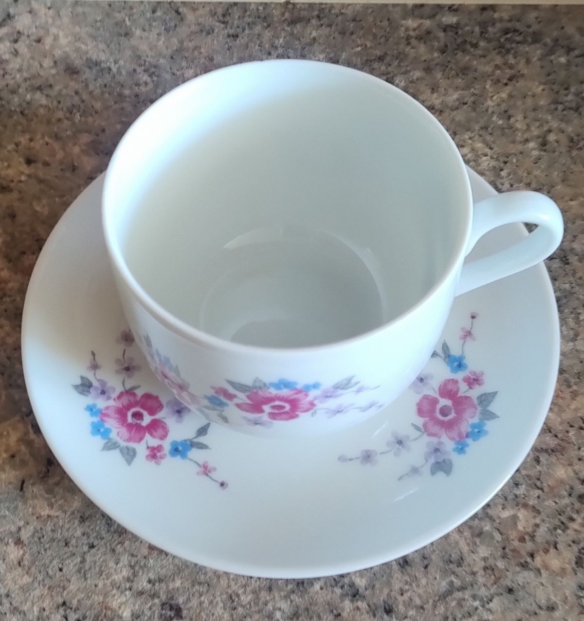 Věnuji krásný, velmi decentně zdobený hrneček (objem 200ml) s talířkem. Zcela bez kazu, v perfektním stavu. Nevyužiji, nic jiného mě k darování nevede, třeba někomu udělá radost.