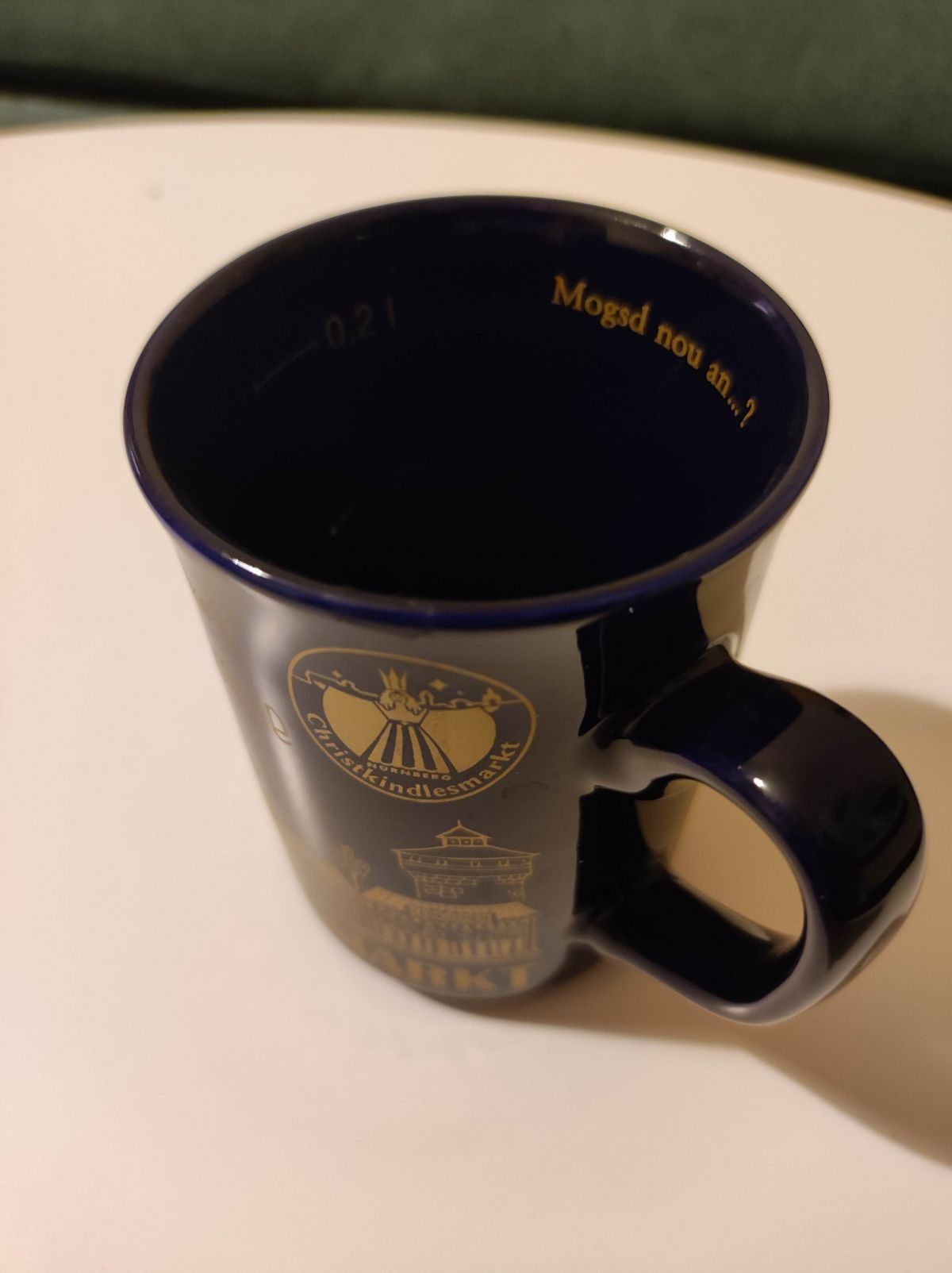 Daruji za odvoz hrnek z vánočních trhů v Norimberku v roce 2019. Použitý, v dobrém stavu, viz foto. Barva tmavě modrá, 0,2 l. Osobní předání Praha 2.